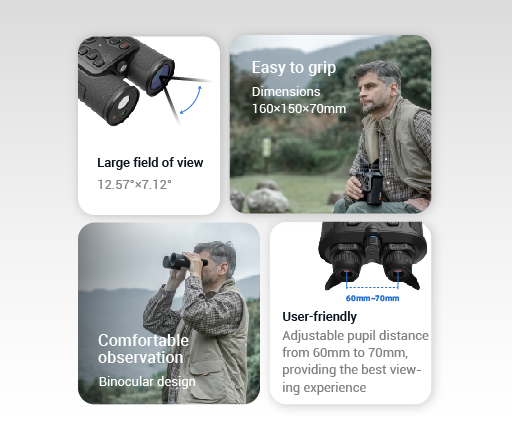 С биноклями серии DN создавайте изображения сверхвысокой четкости 4K. Их CMOS-сенсор 3840×2160 @ 2 мкм при слабом освещении при лунном свете и AMOLED-дисплей 1920х1080 позволяют создавать потрясающие изображения днем и ночью. При достаточном освещении детектор низкой освещенности 4K обладает хорошей цветопередачей, обеспечивая более тонкие и красочные изображения; а утром, в сумерках и ночью, когда недостаточно света, включите инфракрасную подсветку, и вы сможете “видеть сквозь” темную ночь с большого расстояния, чтобы наблюдать, идентифицировать и отслеживать скрытые цели впереди.