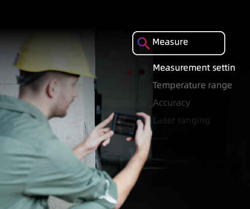 Лазерный индикатор Обеспечьте точное определение местоположения и точное измерение температуры целей. Лазерный дальномер Точный расчет расстояния до цели и интеллектуальное вычисление площади прямоугольного объекта.